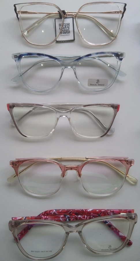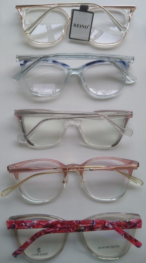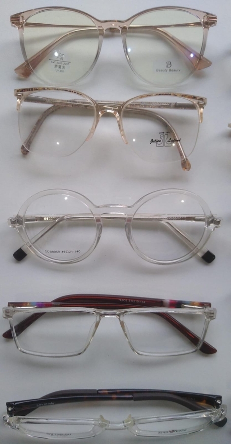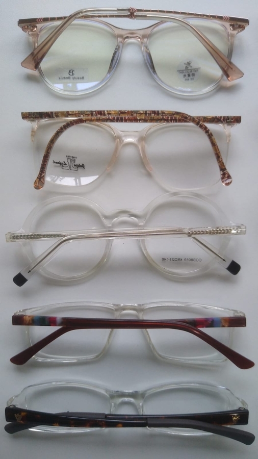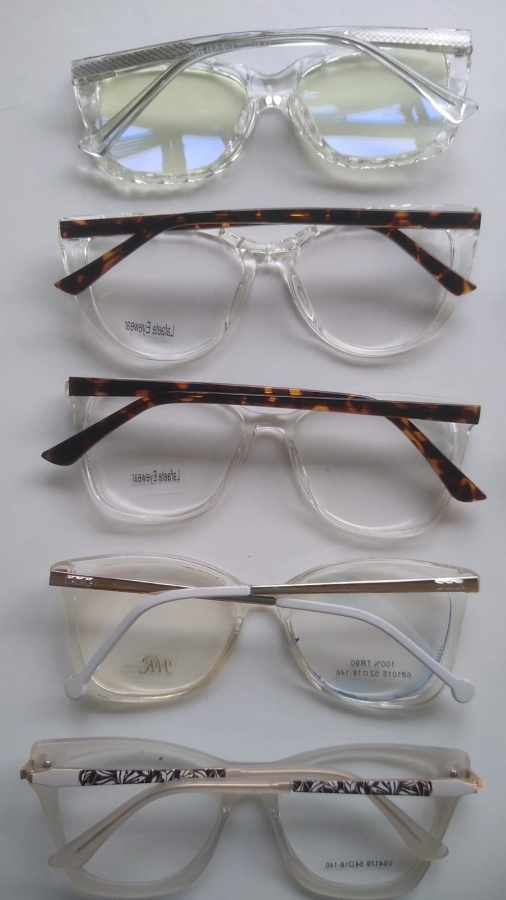 Armações de óculos cor transparente.